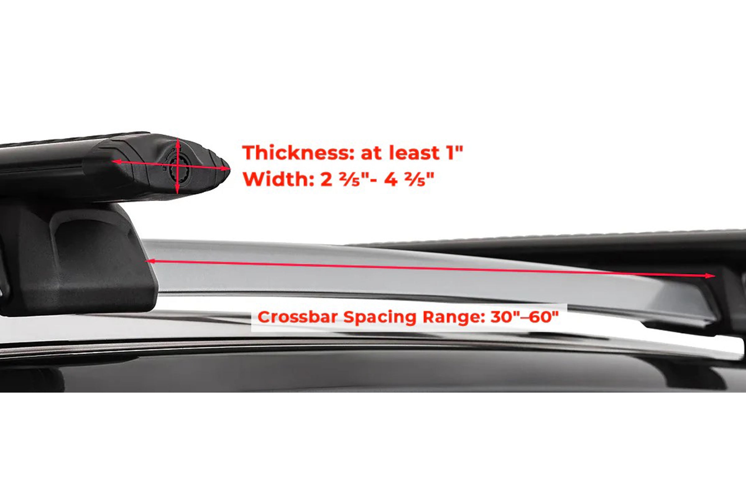 • Crossbar Width: Each crossbar must be between2 ²⁄₅" inches and 4 ²⁄₅" inches wide.