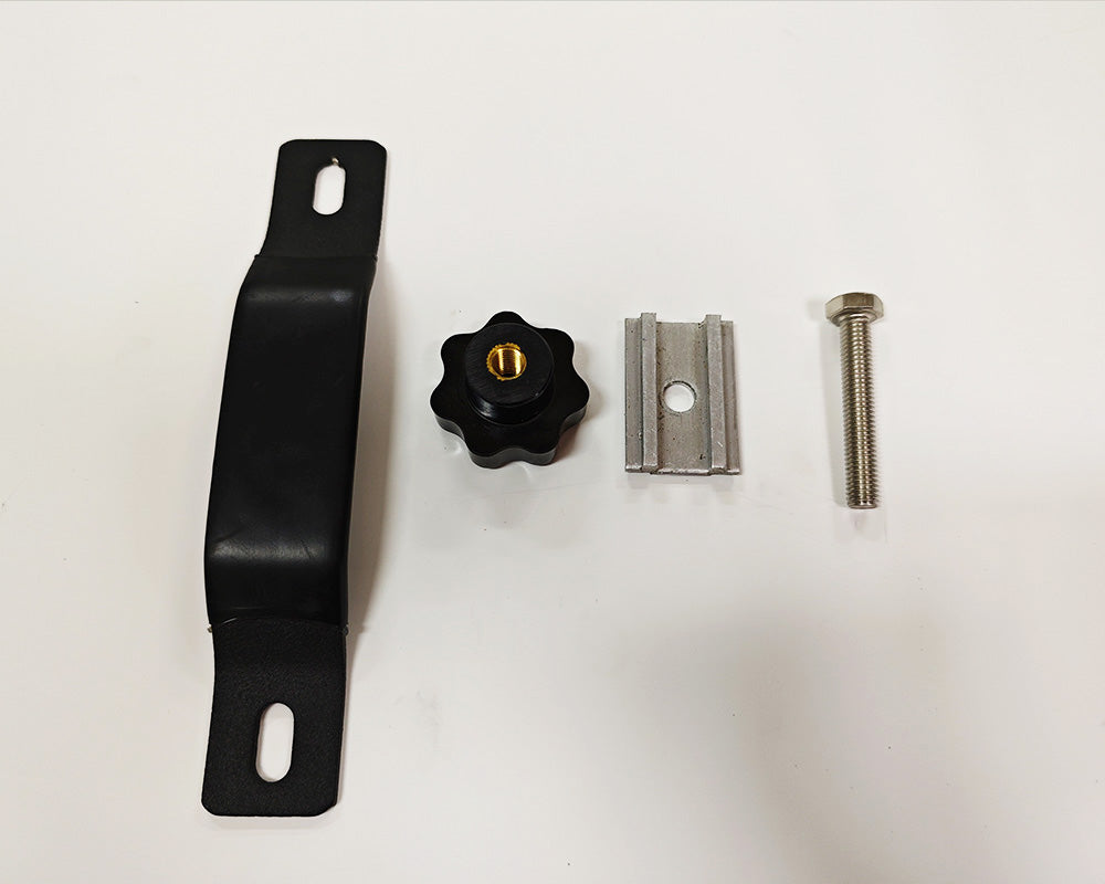 Take out one U bracket, one black quick-release nut , one mounting plate, and one M8 bolt, and get ready to assemble them together.