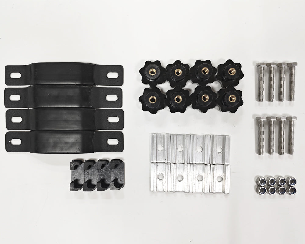 • Finger-tighten a black quick-release nuts onto the M8 bolt. Repeat for all four corners.
