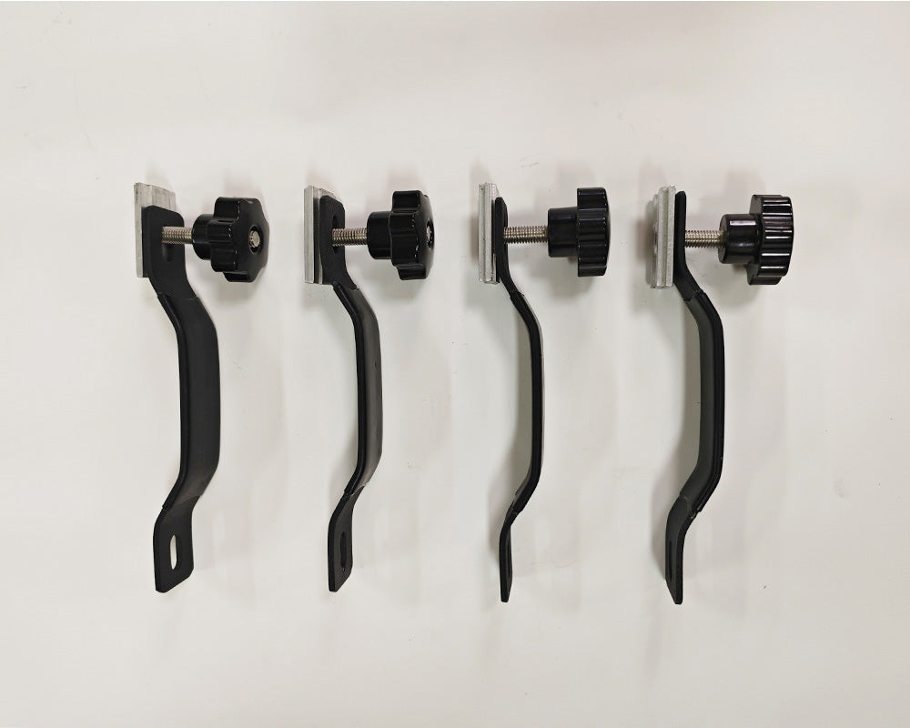 Fully secure both the black quick-release nuts and the anti-slip nuts (with the blue rubber ring) at the screw ends.