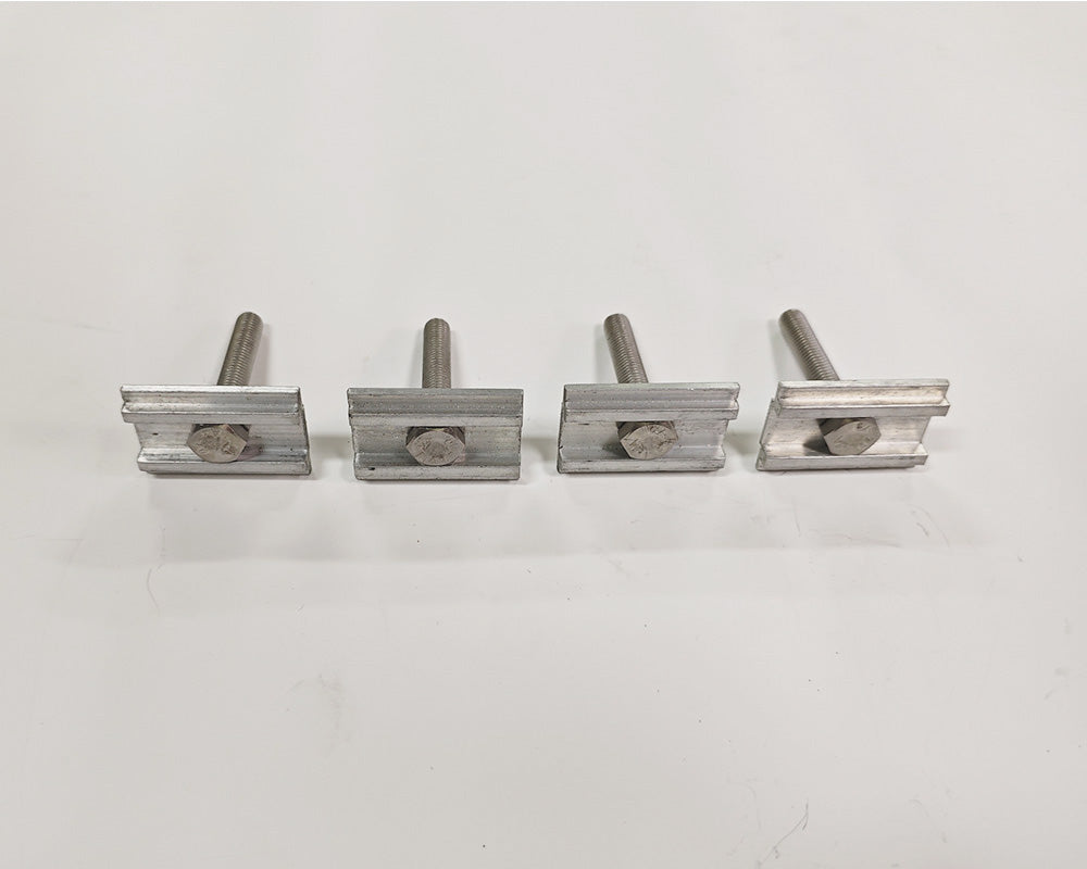 Assemble the other four sets of M8 bolts and mounting plates (with tracks facing up) as well.