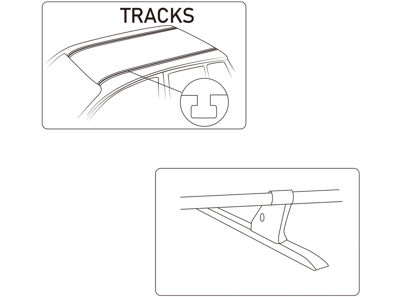 Roof tracks run along the sides of the vehicle, serving as channels instead of raised rails. The channels allow flexible placement of the crossbars along their length from front to back.