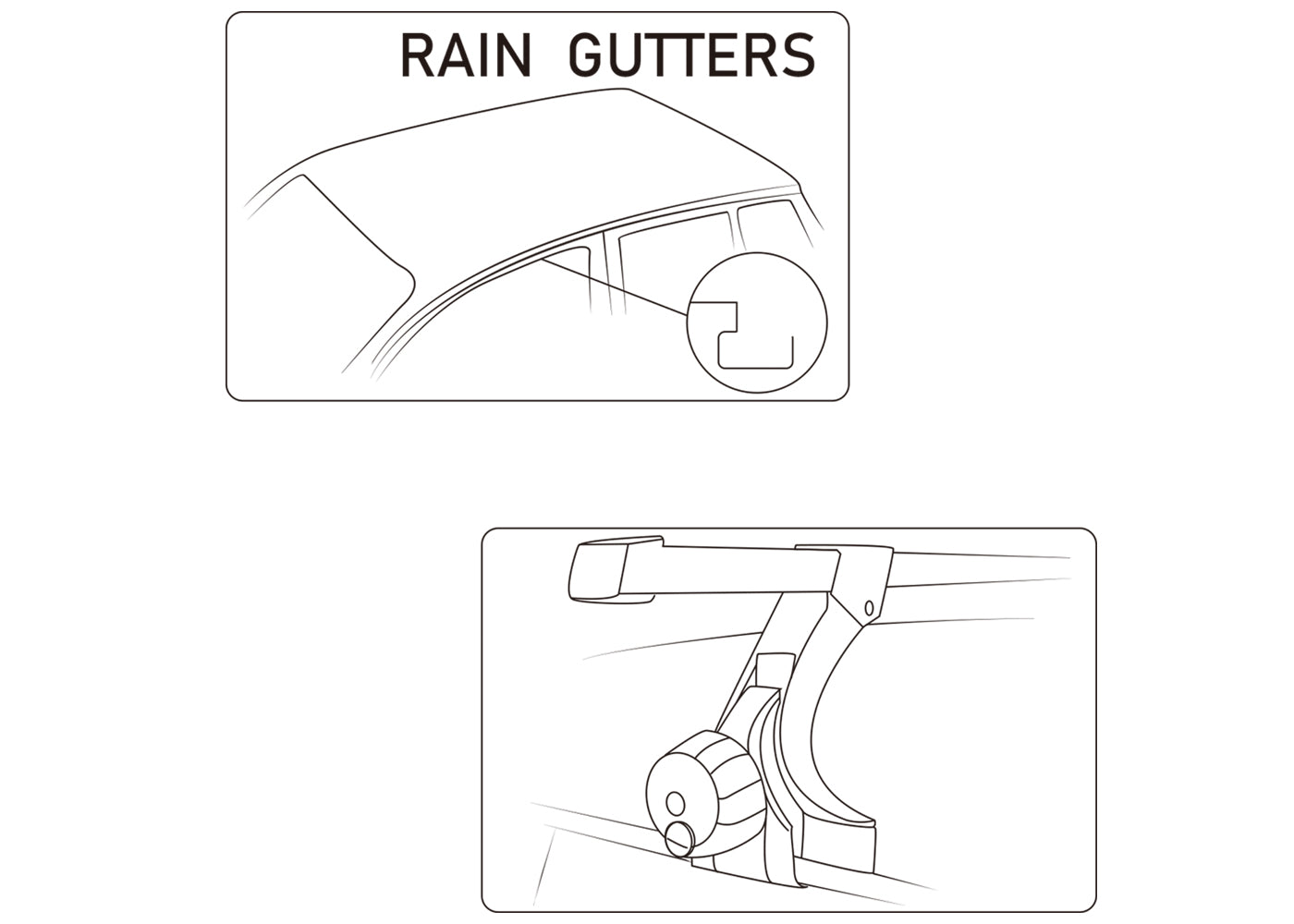 Rain gutters are small channels at the roof's edge, mostly seen on cargo vans.