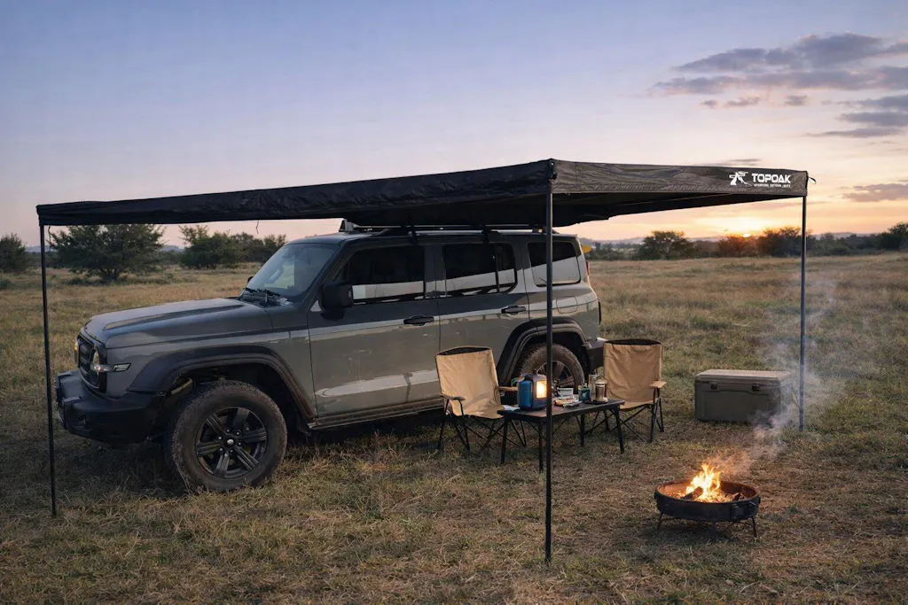 Create a functional shaded space along the side of your vehicle within minutes. The 180° design delivers generous side coverage for cooking, relaxing, or organizing gear—while keeping your rear hatch fully accessible.